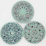 BSTGIFT - Vintage unique design sturdy and decorative protection for kitchen table countertops heatresistant trivet for serving cooling traditional scroll design Size weight awesome scroll trivet 905 x 905 x 075055 lbs wipe with a damp cloth and towel dry Multiusages hot pot mat it can be used as coffee pot holder tea pot holder hot table mat hot pads for cooking bowls mats dish mats pitchen coasters pot holder Perfect for keeping counters and tables free from scratches and heat an elegant replacement for those old pot holders and towels this trivet keeps your counter and dining table safe from scorching hot serving dishes and meals