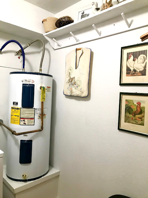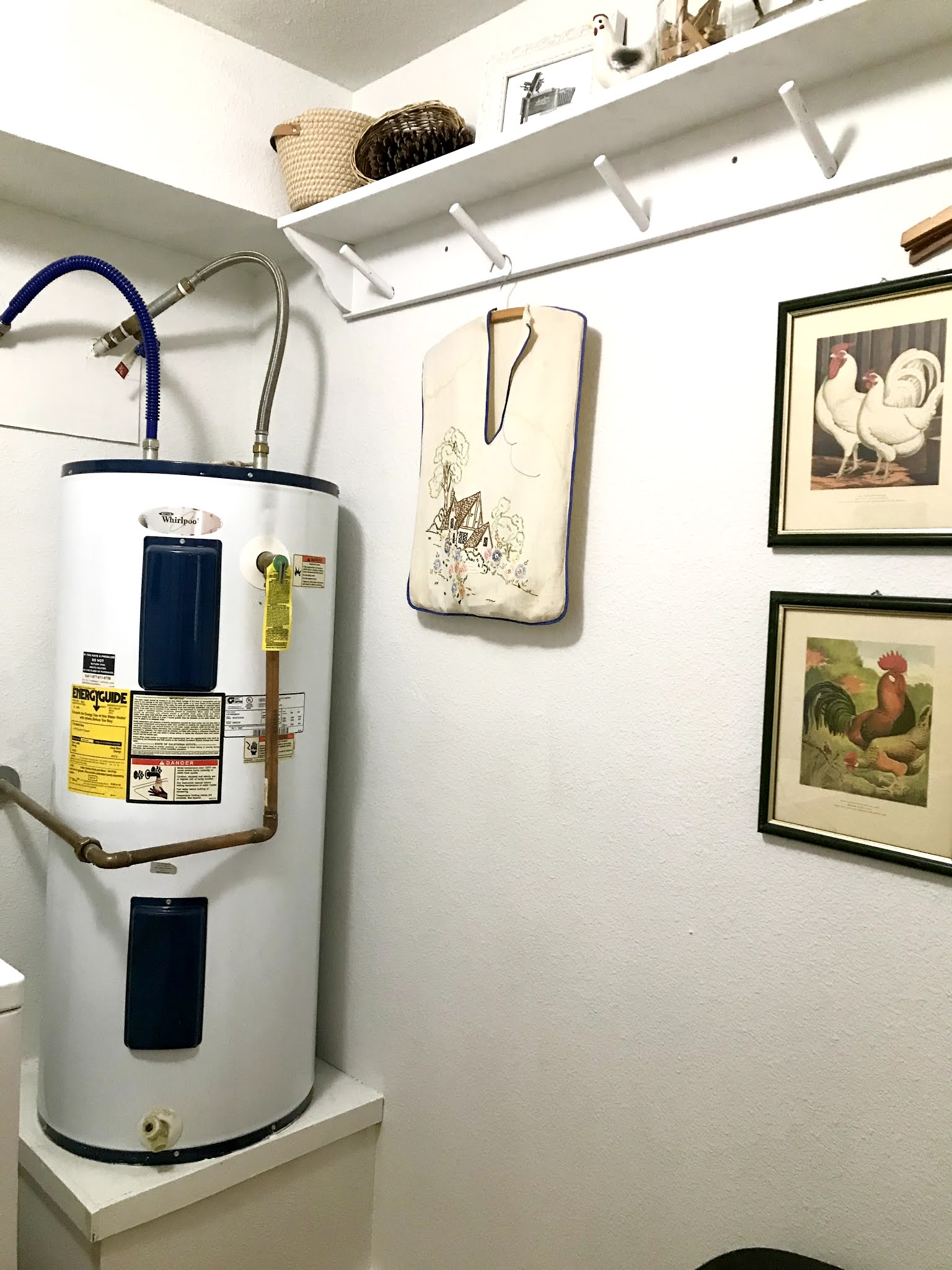 We also found a set of bi-fold doors at an antique store in town. The water heater isn't gas so this is a safe way to hide it.