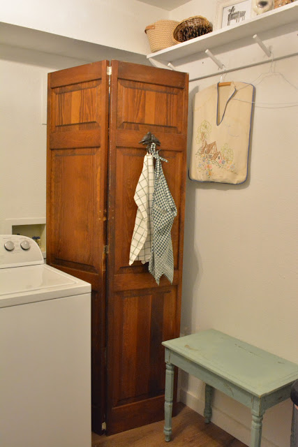 I think I'd like to try taking off the door. It just seems in the way. I don't mind looking into a cute laundry room and we don't really close the door anyway.