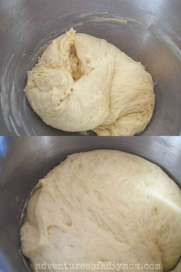 Note: If you don't have a stand mixer, you can totally make this by hand. Stir ingredients together using a wooden spoon until it becomes to stiff to stir. Then turn out on a floured surface and knead for 10 minutes adding flour as needed.
