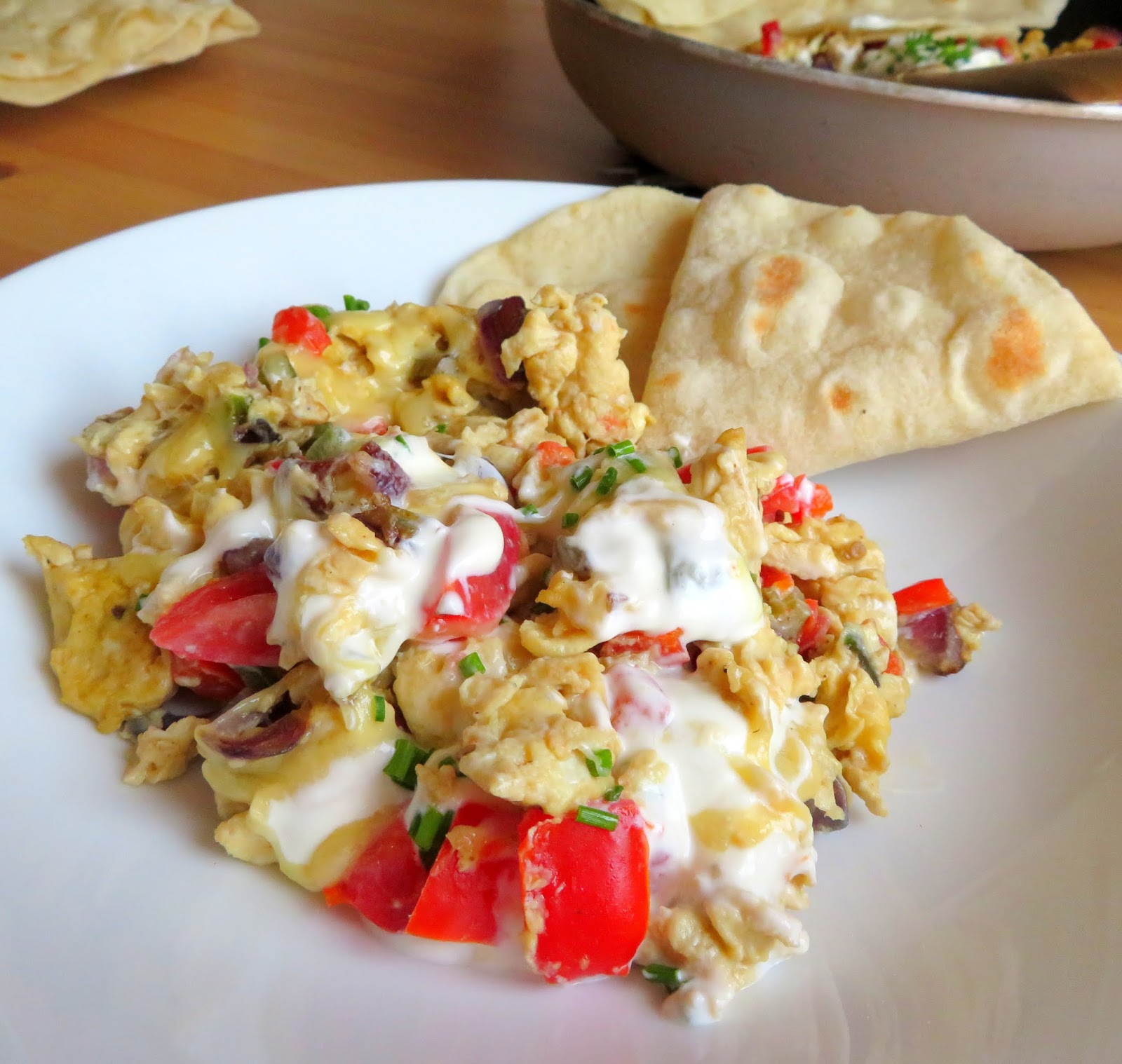 Mexican Scrambled Eggs however deserve a different kind of bread to accompany them and soft flour tortillas are the way to go!