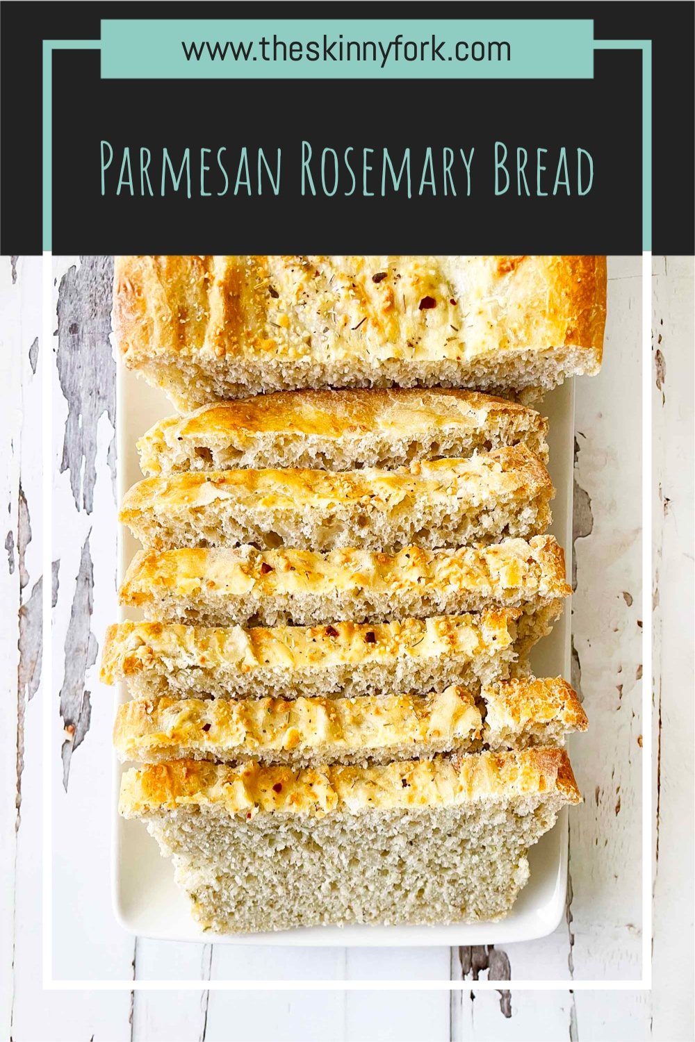 Yield: 12Author: The Skinny Fork (Amanda Plott)Prep time: 10 MinCook time: 25 MinInactive time: 2 HourTotal time: 2 H & 35 MHomemade bread made with parmesan and rosemary baked right into it. Make it in a bread machine or not. Perfect for mopping up soups and stews!Ingredients